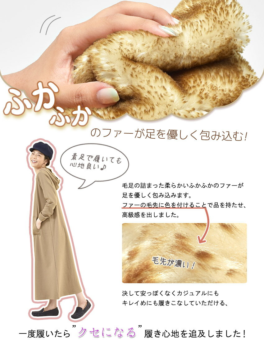 ボリュームたっぷりのファーが足を優しく包み込みます。