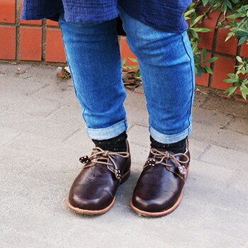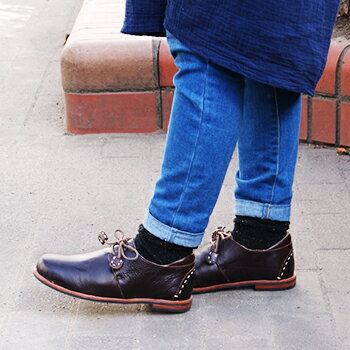 かかとと靴ひも先の 飾りの手縫いのモカ糸がクラフ ト感があって可愛いです!かか とのクッションは靴擦れを防止 してくれるので最初から安心し て履けたのも嬉しかったです。