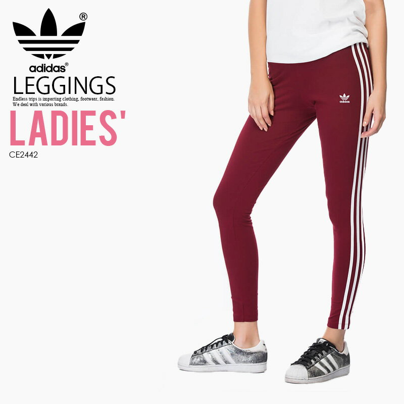 【希少! 大人気! レディース サイズ】 adidas (アディダス) WOMENS 3-STRIPES TIGHTS (3ストライプス タイツ) パンツ レギンス CBURGU (バーガンディ ワイン) CE2442 ENDLESS TRIP